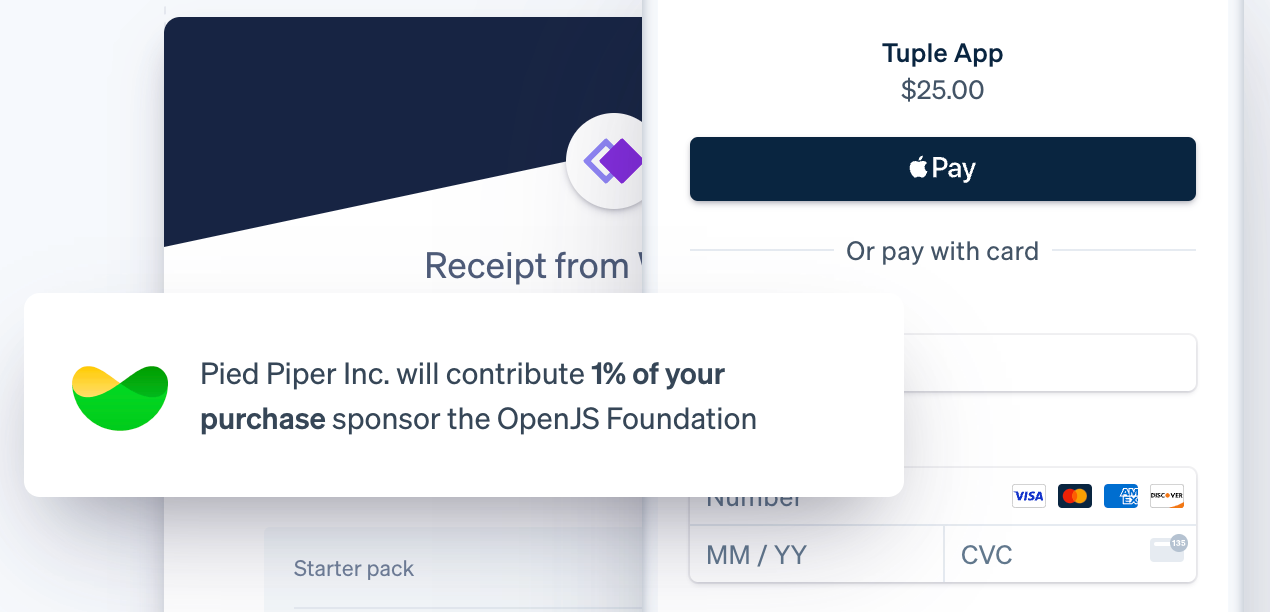 Imagine buying an app that uses many projects from the OpenJS Foundation. Why not ask the customer if they would like to help save an open source project/foundation? Or just do it automatically like shown below: